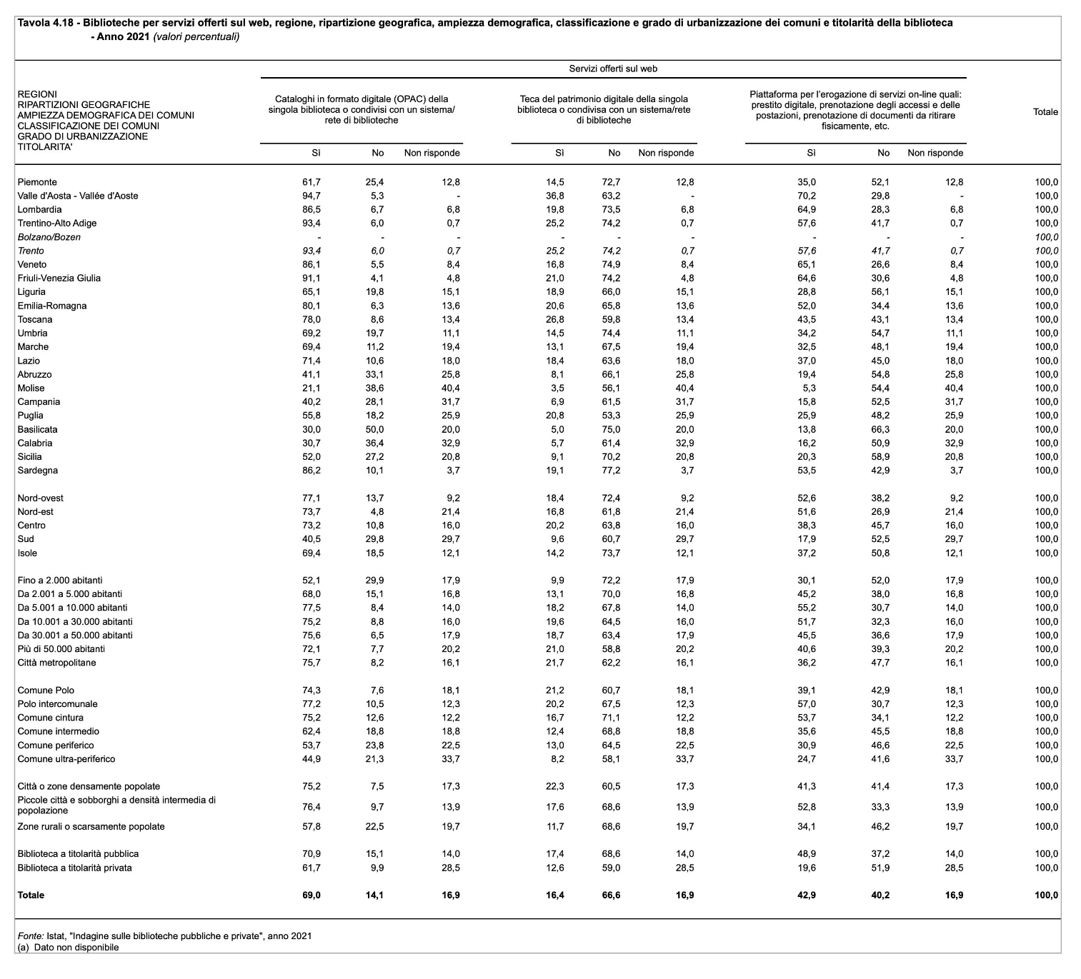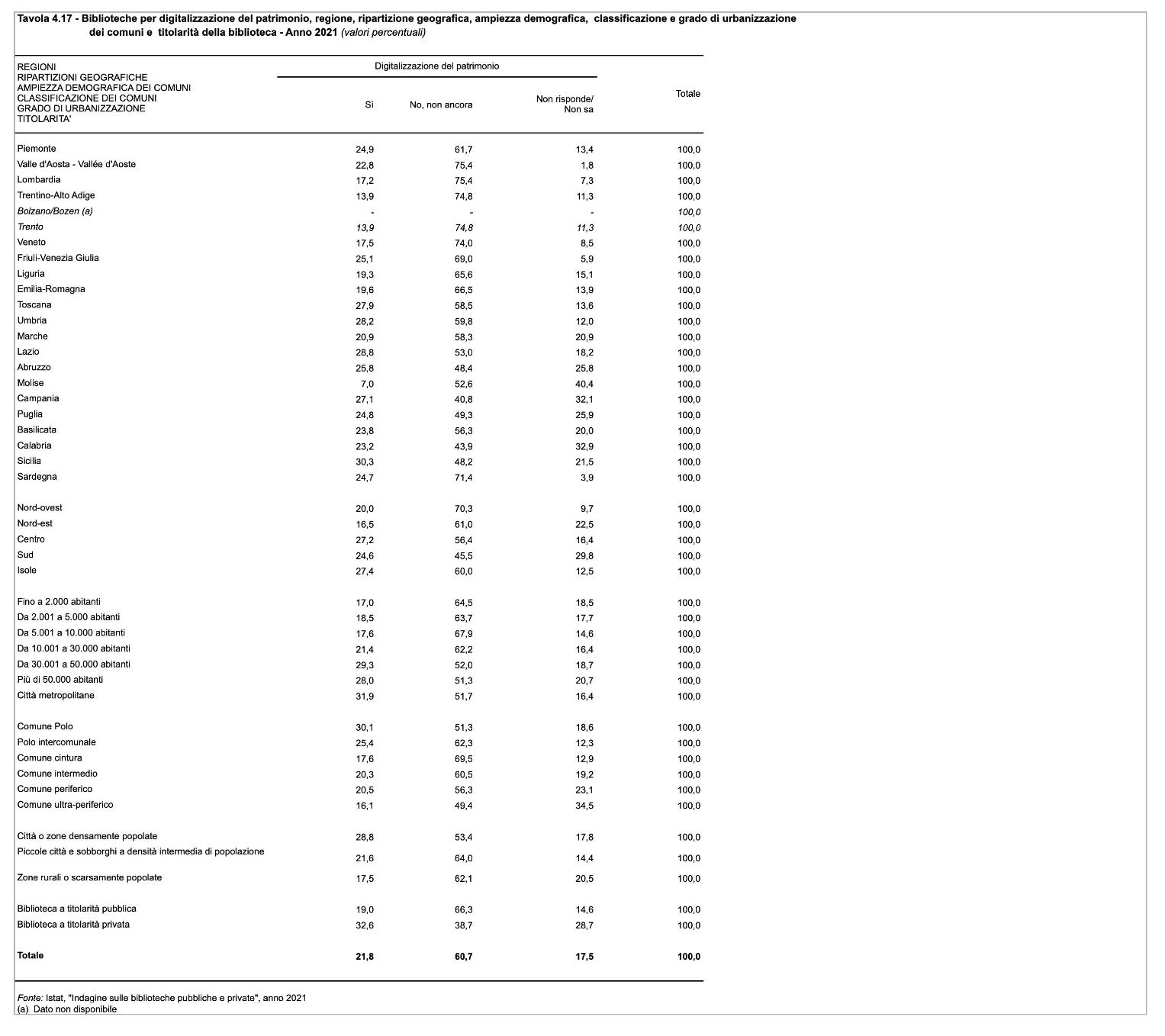 Dati statistici relativi alla produzione, distribuzione e fruizione di beni e servizi culturali in Italia, 2021.
